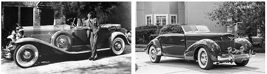 Duesemberg J, de 1931, e Cord 810 de 1936. O primeiro tinha um motor de 8 cilindros em linha e potência igual de 209 HP (estimada), enquanto o Cord utilizava motor V8 com 136 HP e tração dianteira – algo inédito na época.