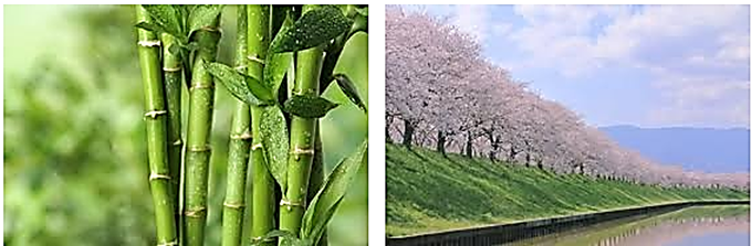 As imagens título do conto: bambus e cerejeiras em flôr